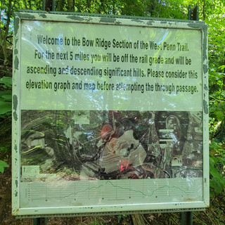 Today started out great. The weather was perfect and I was cruising down the West Penn trail. It was a little rougher than the Ghost Town Trail but still very negotiable. Some rain from the night before made it damp and muddy but also helped keep it cool in the shady woods. Every once in awhile the beast would get a little squirrly in a mud patch but I'm starting to get used to that sensation of a semi truck getting ready to jacknife on a snow covered highway.