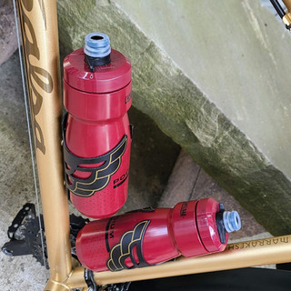 From Portland Design Works. Black and gold to match the Salsa Marikesh frame with color coordinated water bottles. Ooooh la la